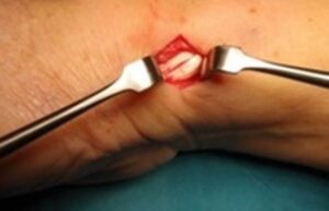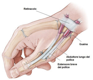 La procedura viene eseguita in anestesia locale e consiste in un’incisione cutanea sul margine esterno del polso centrata sul primo compartimento estensorio e nell’incisione del retinacolo con sua aperura e conseguente scorrimento dei tendini senza più dolore e attrito.